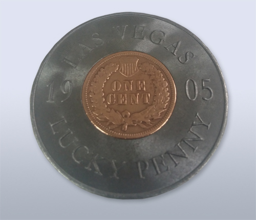 This striking ball marker commemorates the founding of Las Vegas with an original 1905 Indian Head penny which has been surrounded by a steel edging stamped with "Las Vegas, 1905, Lucky Penny" on both sides. Each ball marker measures 1 9/16" and comes in a protective, drawstring pouch.