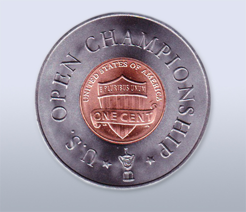 This stunning ball marker commemorates the 2017 U.S. Open using an original 2017 penny which has been surrounded by a steel edging with "Erin Hills 2017 U.S. Open" and the club logo stamped on the rim on one side and "U.S. Open Championship" stamped on the flip side. Each ball marker measures 1 9/16" and comes in a protective, drawstring pouch.